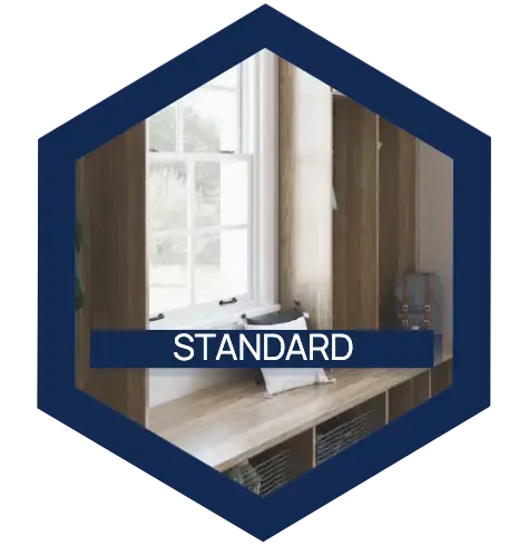 Our Standard line features durable TFL melamine construction with built in benches, shoe storage, coat storage, and organization accessories, available in a variety of colors.