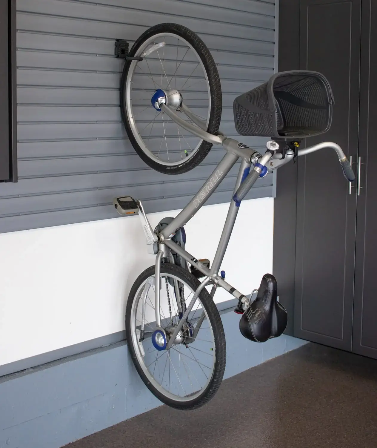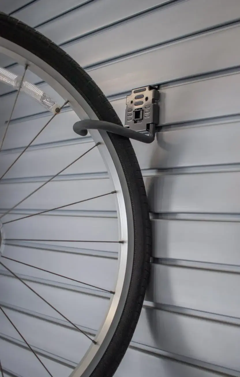 Keep your garage or storage area organized with this heavy-duty bike hook designed specifically for slatwall systems. The coated steel hook securely cradles your bike’s wheel, protecting it from scratches while keeping it off the ground and out of the way. Perfect for mountain bikes, road bikes, and cruisers, this hook easily locks into standard slatwall panels and supports heavy loads with confidence.